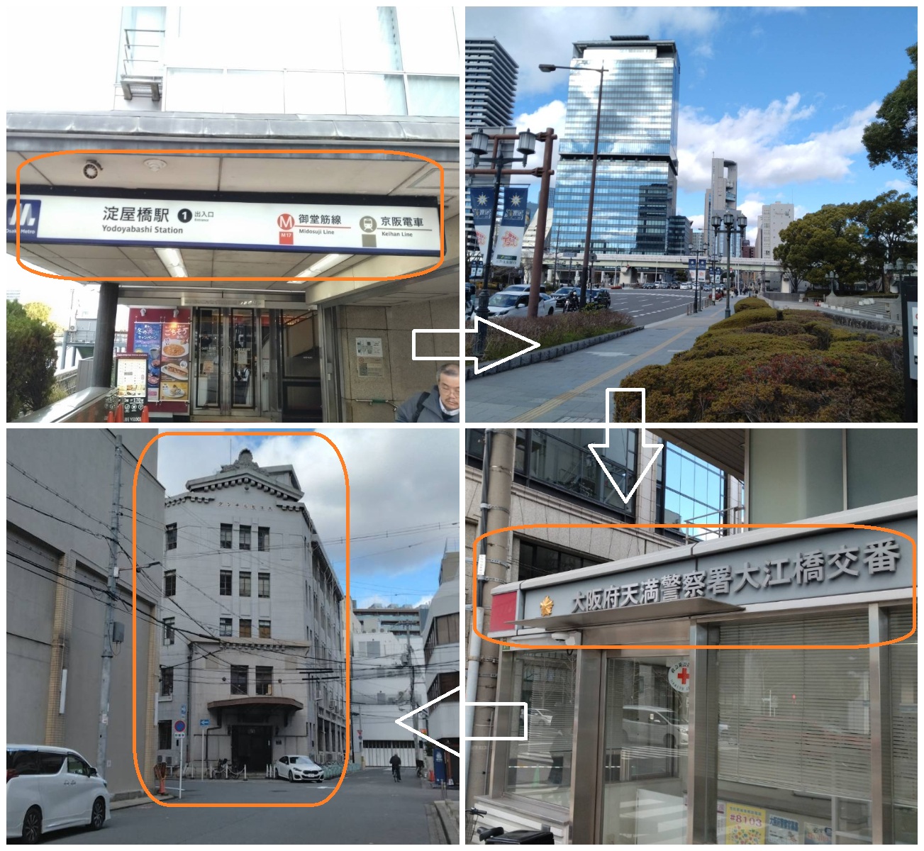 - 淀屋橋1番出口から右へ歩き大江橋を渡る