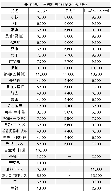※ より洗浄力を求める場合は、洗い張りをお勧めします。